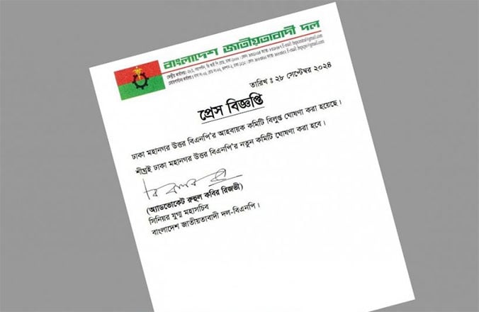 বিএনপির ঢাকা মহানগর উত্তরের কমিটি বিলুপ্ত