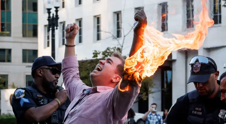 হোয়াইট হাউসের সামনে ফিলিস্তিনপন্থি বিক্ষোভে গায়ে আগুন দিলেন সাংবাদিক