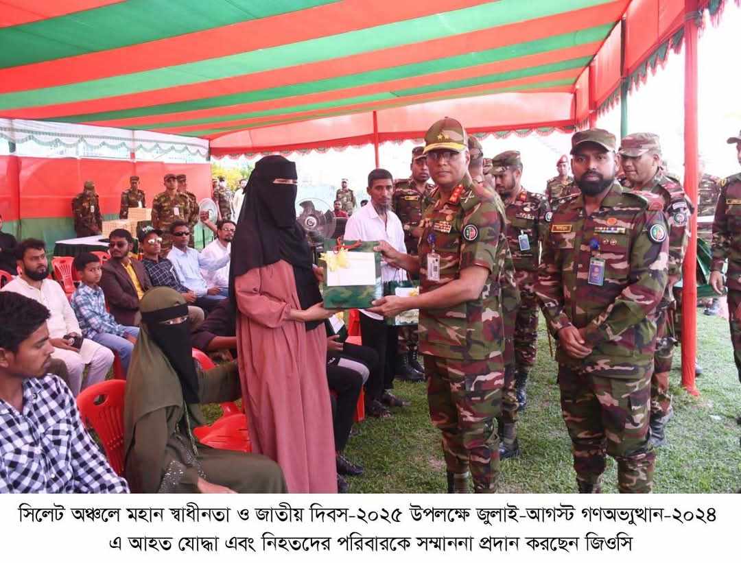 গত ২৬ মার্চ ২০২৫ তারিখে মহান স্বাধীনতা ও জাতীয় দিবস উপলক্ষে সিলেট অঞ্চলের বীর মুক্তিযোদ্ধা এবং জুলাই গণঅভ্যুত্থানে আহতদের সম্মানে বাংলাদেশ সেনাবাহিনীর ১৭ পদাতিক ডিভিশন ও সিলেট এরিয়ার তত্ত্বাবধানে একযোগে সিলেট, সুনামগঞ্জ, মৌলভীবাজার ও হবিগঞ্জ জেলায় কেন্দ্রীয় ইফতার এবং দোয়া মাহফিলের আয়োজন করা হয়। উক্ত ইফতার মাহফিলে প্রধান অতিথি হিসেবে উপস্থিত ছিলেন জেনারেল অফিসার কমান্ডিং ১৭ পদাতিক ডিভিশন ও এরিয়া কমান্ডার, সিলেট এরিয়া মেজর জেনারেল আ স ম রিদওয়ানুর রহমান, এডব্লিউসি, এএফডব্লিউসি, পিএসসি, জি। এ সময় শাহাদাৎ বরণকারী বীর মুক্তিযোদ্ধা ও জুলাই গণঅভ্যুত্থানে নিহতদের রুহের মাগফিরাত, আহতদের পরিপূর্ণ সুস্থতা এবং দেশ ও জাতির মঙ্গল কামনা করে মোনাজাত করা হয়।