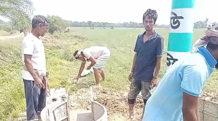 সরেজমিনে দেখা যায়, ইতিমধ্যে অধিকাংশ পাম্প ঘর নির্মাণ কাজ শেষ হয়েছে। চলছে পাইপ লাইনের আউটলেট নির্মাণের কাজ। সেখানে পরিমাণে খুবই সামান্য সিমেন্ট, ধুলার ন্যায় খোয়া ও বালু ব্যবহার করা হচ্ছে ঢালাইয়ে। তাৎক্ষণিক প্লাস্টারই খসে খসে পড়ছে, সেটি বারবার মিস্ত্রি দাঁড় করানোর চেষ্টা করছে। এছাড়া প্রতিটি আউটলেটে ১০ মিলি মিটার রডের ৬ ইঞ্চি বর্গ করে স্পেস তৈরি করে ব্যবহারের কথা থাকলেও সেটা করা হচ্ছে না। মাত্র ৮ মিলিমিটারের মাত্র ২/১টি রড ব্যবহার করা হচ্ছে। ফলে হাত দিয়ে চাপ দিলেই আউটলেটের ওয়াল ভেঙে পড়ে যাচ্ছে।